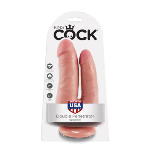 Harness compatible, double ended dildo with suction cup.